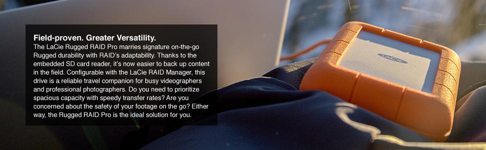 - Rugged Raid Pro offers the best of all worlds raid versatility, an integrated SD card reader for on the spot transfers, and extreme drop, dust, and water resistance